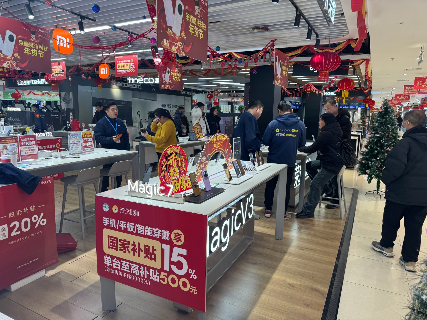 手机等数码产品购新补贴政策于1月20日起在全国多地陆续开始实施。根据1月8日发布的《关于2025年加力扩围实施大规模设备更新和消费品以旧换新政策的通知》,对个人消费者购买手机、平板、智能手表手环等3类数码产品(单件销售价格不超过6000元),按产品销售价格的15%给予补贴,每位消费者每类产品可补贴1件,每件补贴不超过500元。这直接激发消费市场热情。全国多家消费电子综合卖场均呈现出消费者大排长龙选购新机的火热场面。