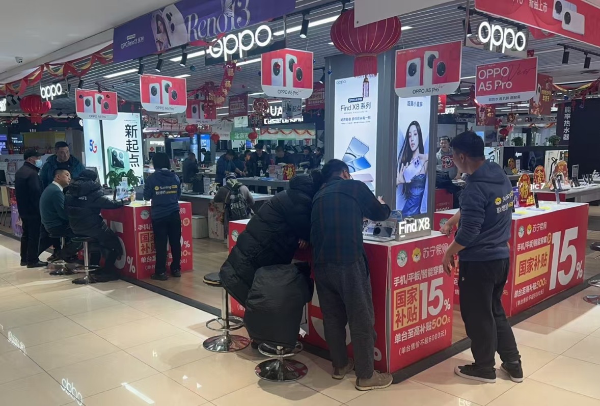 “我也没想到,在享受‘国补’和门店优惠活动后,手机竟然比上周便宜了1500元,实在是太划算了。”1月22日9点20分,位于苏宁易购集团股份有限公司(以下简称“苏宁易购”)北京联想桥店,孙先生买下了一台OPPO手机。